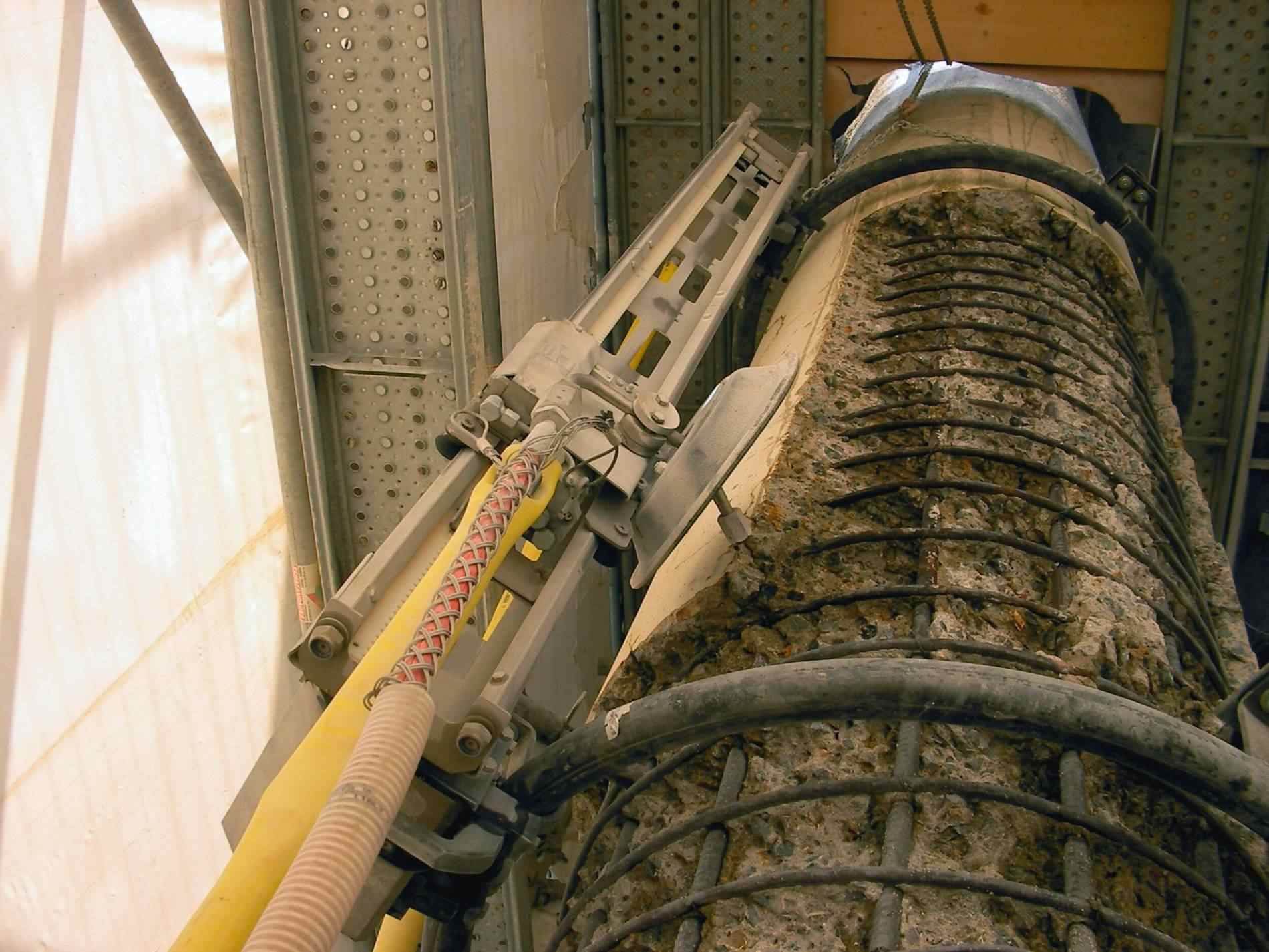 Conjet ACR™ Jetframe清除系统非常适用于此类高难度结构的混凝土清除与表面处理。因其切割头安装在刚性框架上,它能够在其他机械设备无法有效触及的高耸立柱和圆柱形管道上施工。